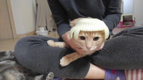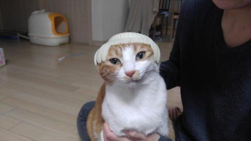 저거 쓰고 얌전히 있어서 신기하다 했는데 찰나를 찍으신 거군요~ ㅎㅎ