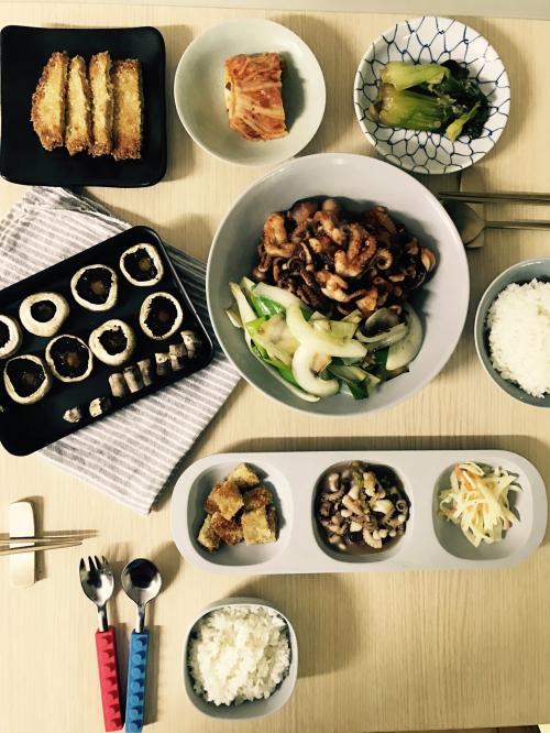 간단히 먹을 생각에 오전내 청소하고 반찬도 안해놔서 부랴부랴 냉장고에 있던걸로만 차린 밥상입니다.