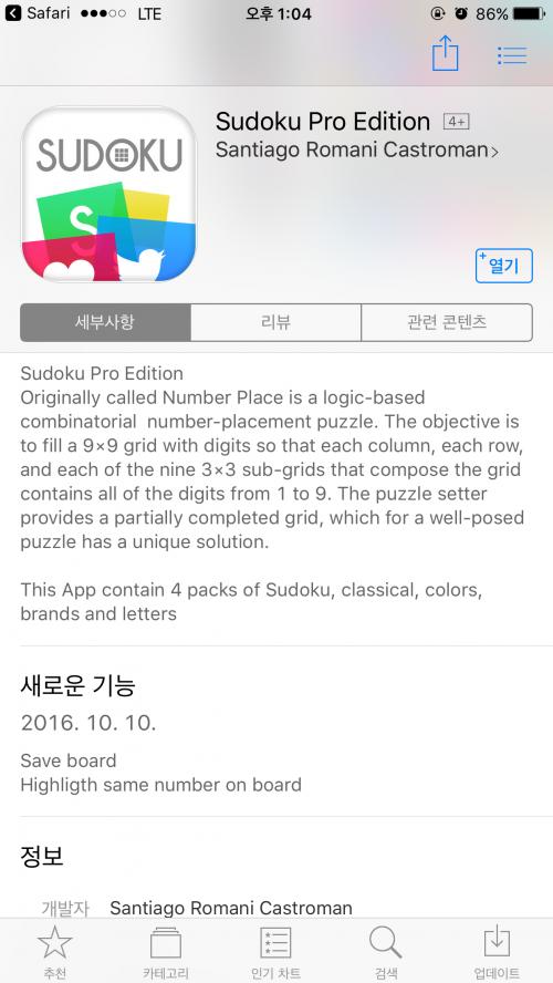 아이폰 유저들 좋겠어용. 저도 스도쿠 넘 좋아하는데 말이죵 | ||