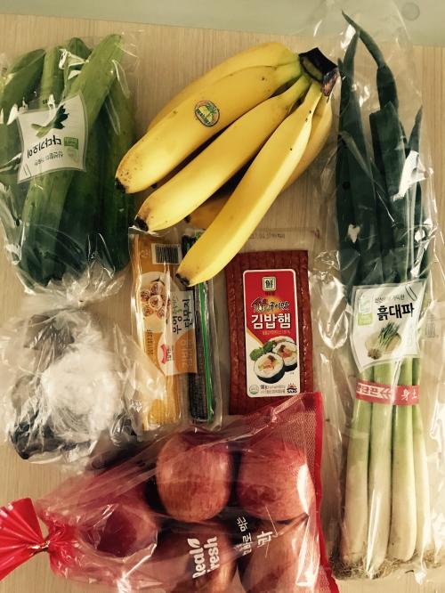 손질해서 소분해둘 오징어도 한마리 가격에 두마리길래 구매하고, 급 저녁 메뉴가 되어버린 김밥재료도 사봤어요.