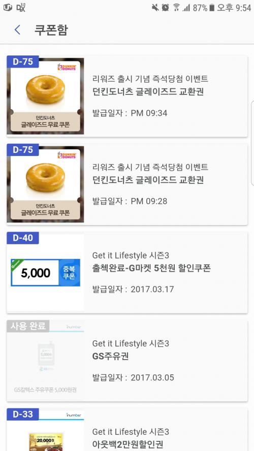 와.. 저번 이벤트 주유쿠폰에.. 아웃백 2만원할인권에.. 전 던킨 3장으로 마무리했습니다.