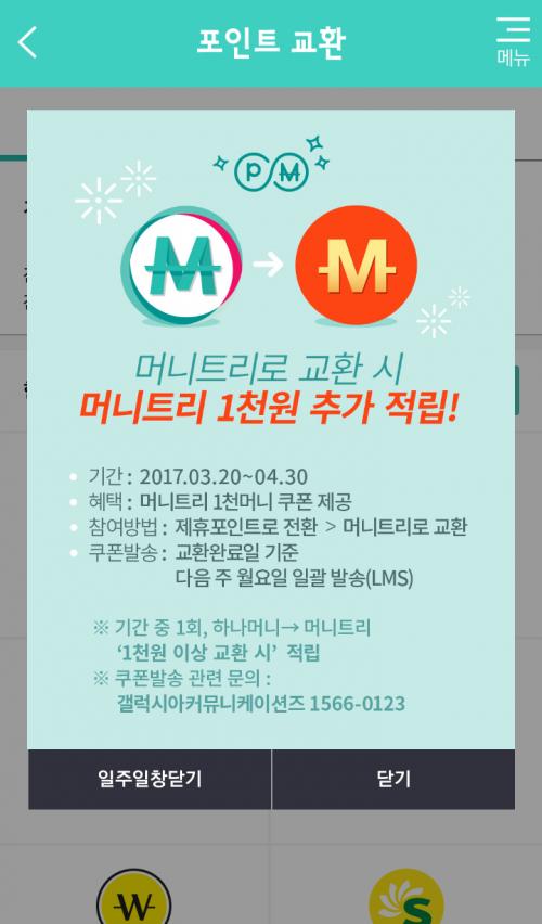 하나머니 1천 머니 교환하면 차주 월요일에 1천 포인트 더 준다네요.