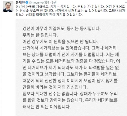 문재인이 자기를 네거티브로 비방하고 공격해서....
