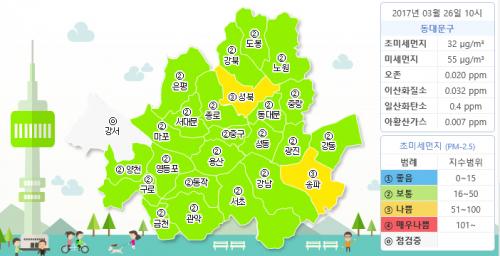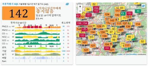 초미세먼지(PM 2.5) 기준으로 국내 자료는 거의 보통 수준인데 http://aqicn.org 라는 사이트에서는 나쁨 수준이더라구요.