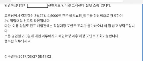 - 3월26일자로 올라온 티몬발 롯데상품권 5만원권(10%)는 올댓 경유시 2%적립 가능대상 이며, 네이버페이 체크카드로 결재를 해도 적립이 된다고 합니다.