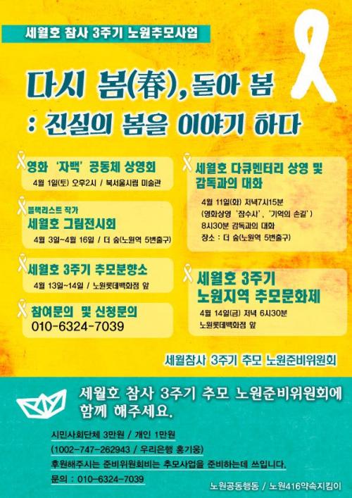 <세월호 참사 3주기 추모 노원준비위원회에 함께 해주세요.>