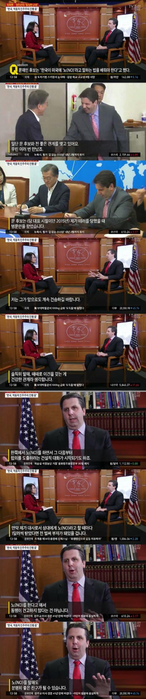 저건 근데 대사의 관점에 불과하지 않나요? 과거 오바마 정권시절에 측근으로도 알려져 있는 인물이고, 트럼프처럼 독불장군식의 결정권을 갖고 있는 상대에게 과연 예스와 노로 추가적인 대화가 이루어질지 의문입니다. 계기만 확실하다면 노무현 대통령때 처럼 반미정서 커질거 같기도 하네요. | ||