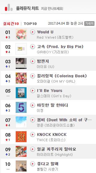 멜론은 차트아웃위기던데 1위라고 언플하네요 하루1위도 아니고 | ||
