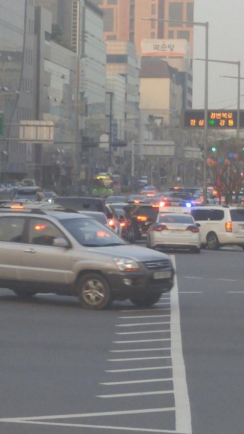 퇴근길 봉은사역 사거리 모습입니다... 늘 꼬리물기가 다반사로 일어나기는 하지만 경찰이 나서서 꼬리물기로 신호를 넘어가면 다른 운전자들 단속하는게 이상하지 않을까요?