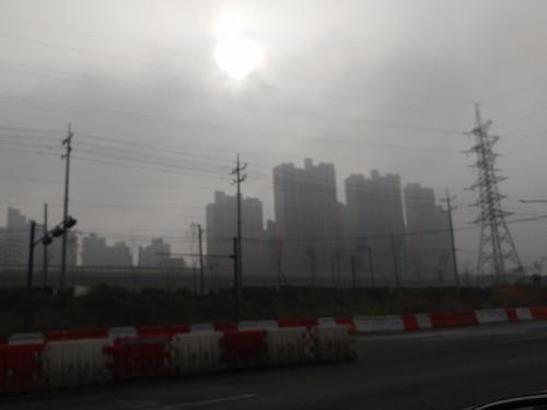하늘을 보자니 연무와 먼지의 콜라보 아닐런지..
