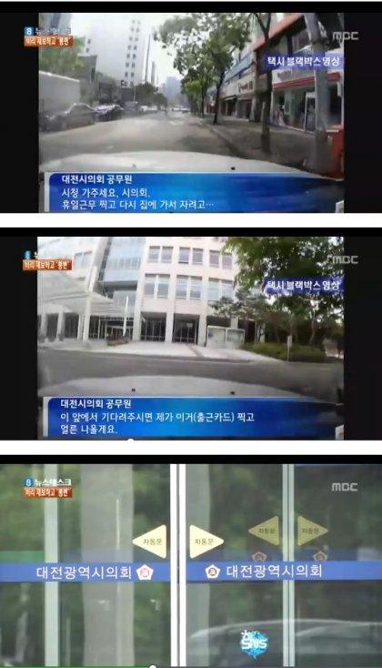10여분 뒤 시의회에 도착한 공무원은 택시를 붙잡아 둡니다.