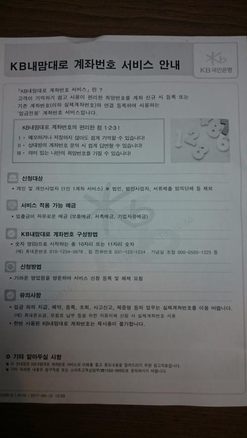 아직 창구 직원분이 모르셔서 KB홈페이지에 게시된 내용 보여주고 번호지정했네요.