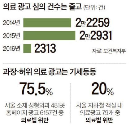 4. 성형외과 홈페이지 광고 76%, 지하철 객차내 의료광고 20%가 위법 → 의료광고 대부분 거짓말. 2015년 사전 심의제도 위헌 판결. 원하는 경우만 받도록 해.(중앙)▼