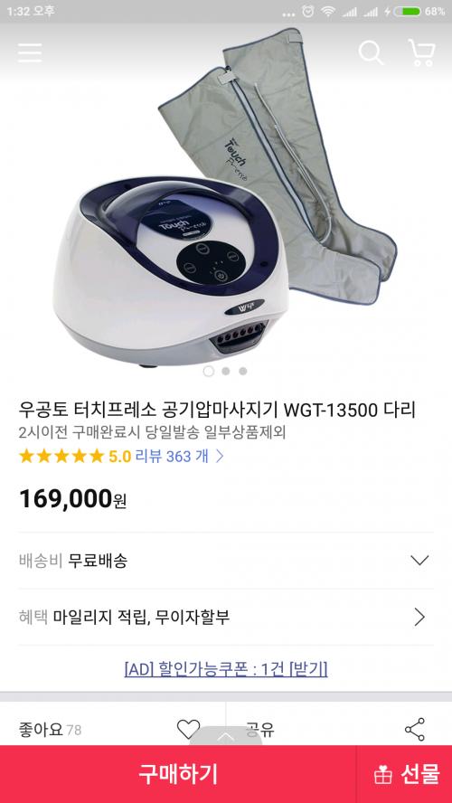 다리 기브스하고나서 물리치료할때 쓴거랑 비슷하네요. 저거는 모터소리 큰지 잘모르겠는데 병원에서 쓰던건 엄청 컸어요. 그런데 딱히 안마용이라기보다는 자극이 좀 덜하더라고요. 임산부들 다리 붓기 없앨때도 쓴다던데..
