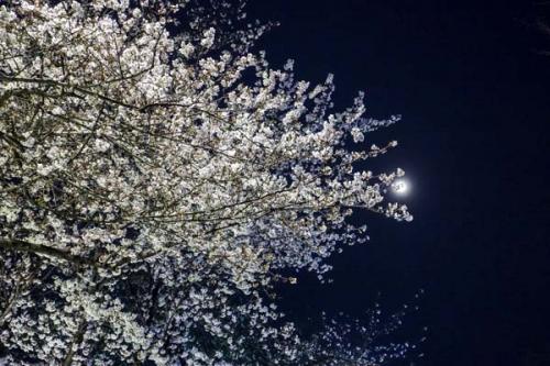 조명에 비친 예쁜 벚꽃과 콜라보 한 사진을 찍을 수 있음!