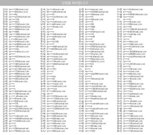 이번에는 당첨자 목록을 공개했지만, CTRL + F가 안먹히는 이미지 파일로 올려놨네요.;;