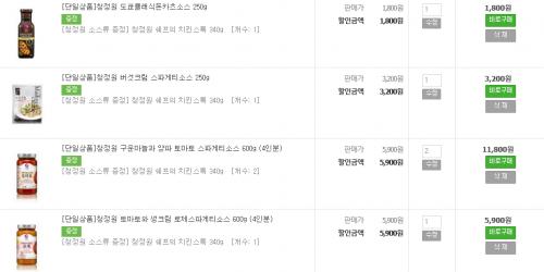 검색창에 "소스" 치시면 75개 상품이 검색이 됩니다.
