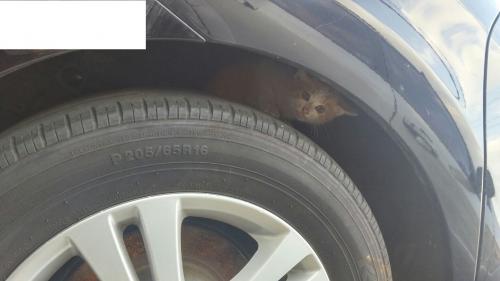 첫번째사진처럼 차 뒷바퀴 위에서 무서워서 나오지도 않는 아기고양이를 발견!