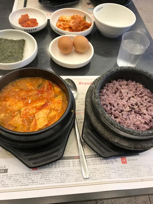 돌솥밥에서 밥 덜은후 뜨거운물 부어 누룽지 만들어놓고 순두부에 날달걀 하나 깨넣어 섞어주기.