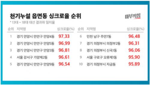 역대 대선 싱크로율 1위 동네는 경기도 안양4동 입니다!!