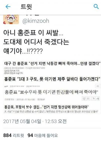 홍준표 "선거 지면 낙동강 빠져 죽어야…
