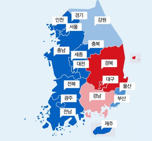 경남이 많이바뀐것같더라구요. 물론 전국지도에서는 빨갛게나오는 동네이지만