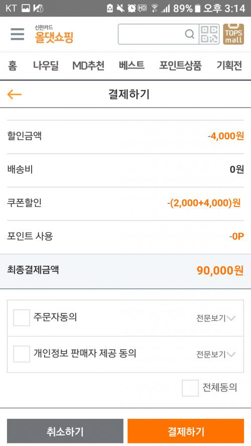 결제하고 돌아오면 실패.. 4천원쿠폰안된대요.. | ||