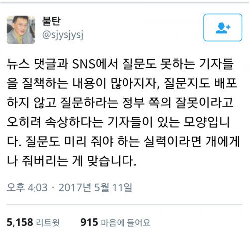 명색이 청와대 출입 기자인데 저건 멍청이들이지 기자라고 할 수도 없죠.