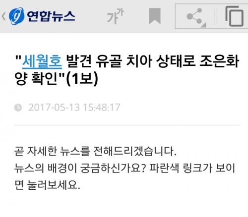 연합뉴스 오보라고 나왔네요. 이게 무슨....유가족도 확인된다없고 해수부에서는 부인하고..................기사를 저렇게 무책임하게 쓰나요. | ||