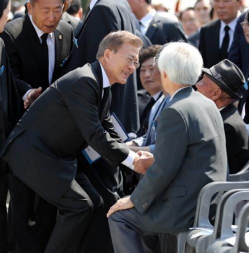 유공자에 대한 예우, 어르신에 대한 예우. 그리고 국민에 대한 예우를 정확하게 할 줄 아는 대통령의 모습입니다.