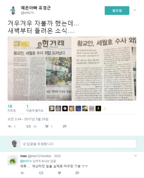저런 것이 권한대행이었다는게...참...슬픈 우리 현실이네요...얼마나 증거인멸에 권한을 악용했을지...휴... | ||
