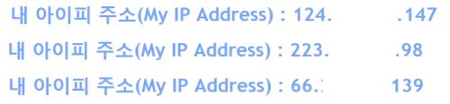 그냥 네이버에 'ip확인' 만 치셔도 나오지 않나요? | ||