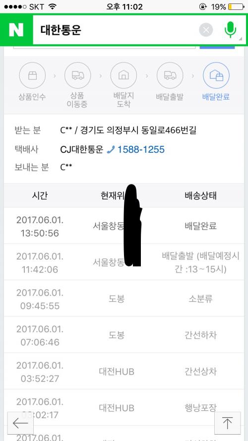 구매자분은 창동에 사시는데, 송장을 조회해 보면 상세 내역엔 창동 쪽에서 배달 완료가 뜨는데 받는 분은 무슨 의정부로 되어 있고... 이게 무슨 경우일까요 도대체 ㅠㅠ