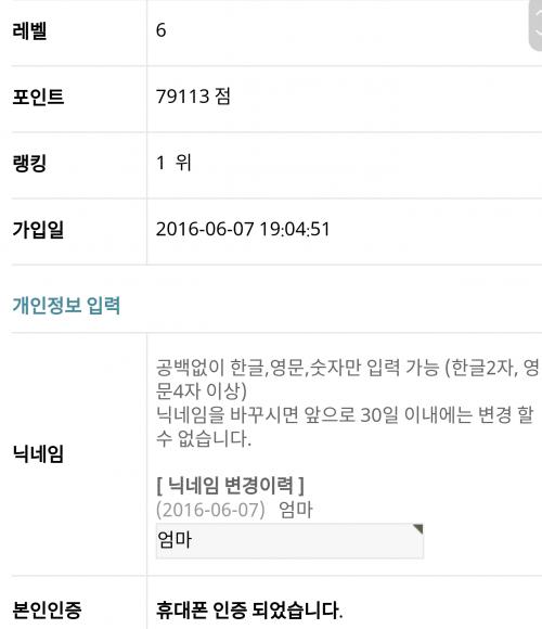 컥 엄마님이랑 같은날 가입했넹.. | ||