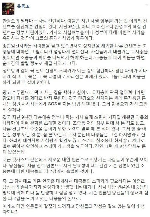 저는 한경오든 조중동이든 권력에 대한 비판은 언론의 기본이라고 봅니다.