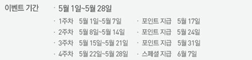 위에 1~4주차 이벤트는 포인트 지급일에 따라서 지급되었습니다.
