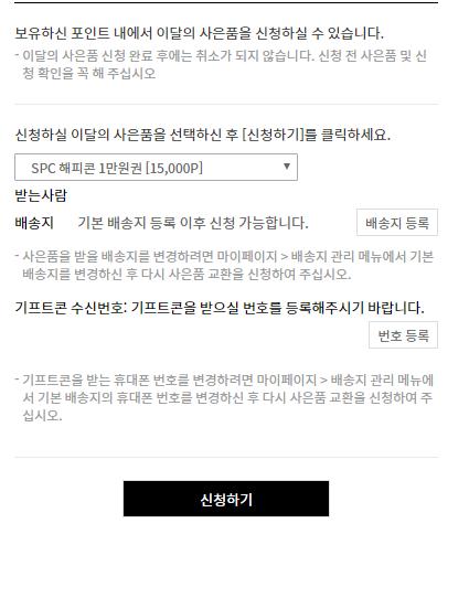 마이페이지에서 배송지 등록후에 배송지 관리에서 기본배송지 등록버튼 눌러서 기본배송지 등록후에 신청하시면 되요 | ||