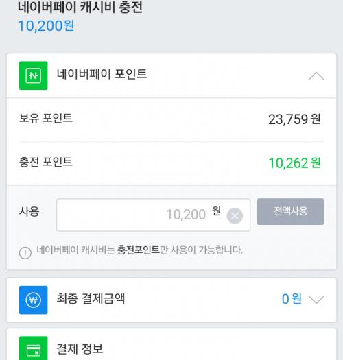 원래 네이버포인트로 충전되던거 막아놓구