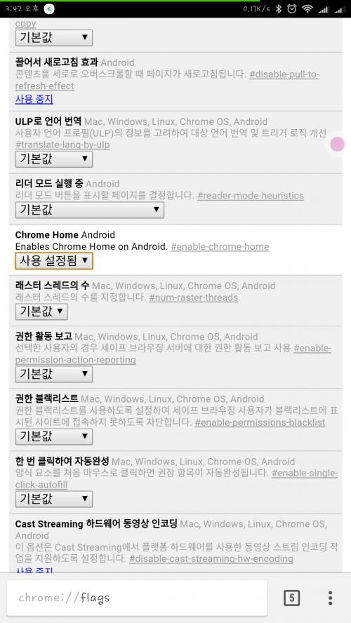 로 들어가서 chrome home을 사용하게 하면 주소창이 아래로 내려가네요.
