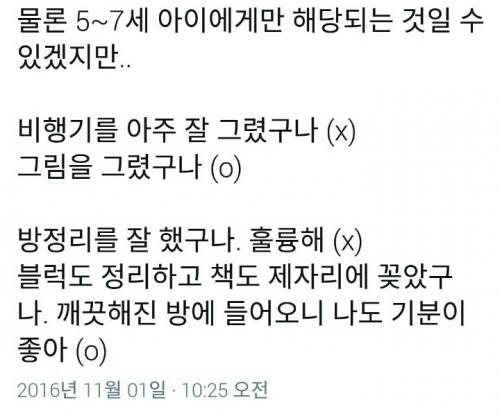 칭찬은 아이의 자존감을 높이는 방법중에 하나라더군요.