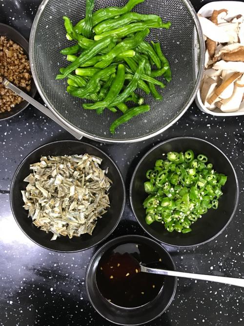 꽈리고추에 녹말 뭍혀 소고기양념에 살짝 졸여줬어요.