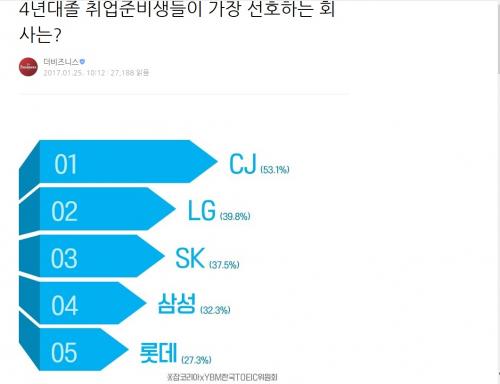 cj가 복지 좋기로 소문나서 여성에게 압도적으로 선호도가 높죠 ㅋ