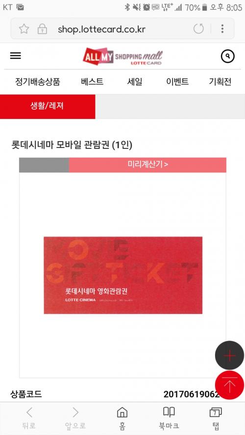 롯카두 있구 엘포인트두 많은데...롯데시네마가 주변에 없어서..ㅜ | ||
