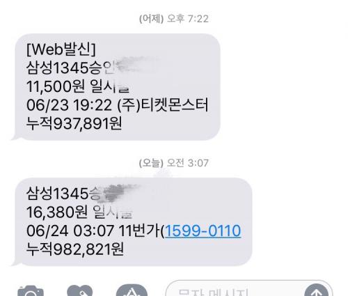 중간시간때 쓴거없고 썼다해도 문자로날라오는데
