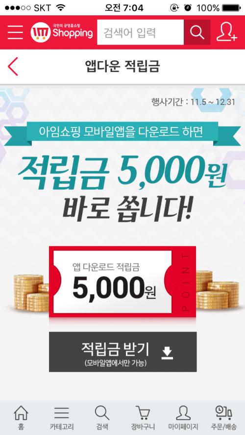 아임쇼핑 앱 신규 가입하면 적립금 5천원 주네요