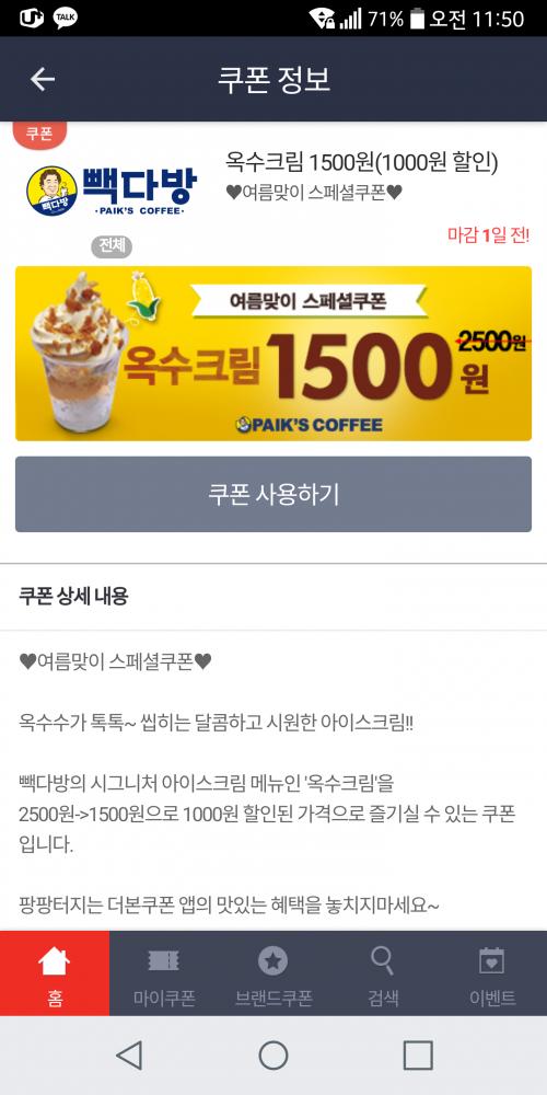 이전에 놓친 쿠폰들보단 뭔가 아쉬운 듯 하지만 그래도 첨 받으니 좋네요 ㅋ 맛나게 드세요^^ | ||