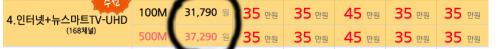 TV는 적응하면 되겠지만 인터넷은 100메가 500메가 상품이 있는데, 기존에 올레 100메가 사용하는것 보다
