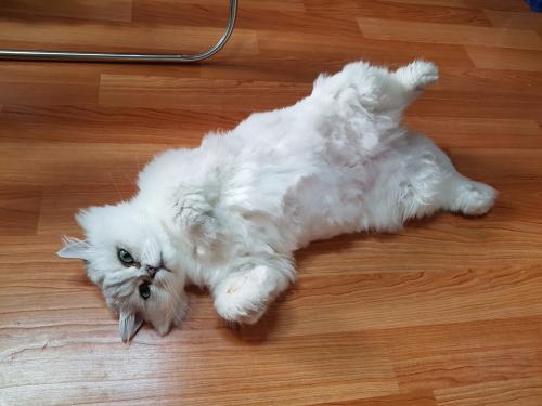 찐빵이 못올라가는 캣폴 맨 윗층에 두부 밥을 뒀었지요.