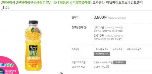 마트핫딜에 홈플러스 코카콜라_미닛메이드홈스타일오렌지_1.2L 상품에 가격정보 오류가
