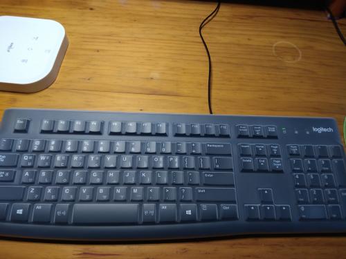 로지텍 k120 키보드인데 타자감 좋고 키스킨도 포함이예요.